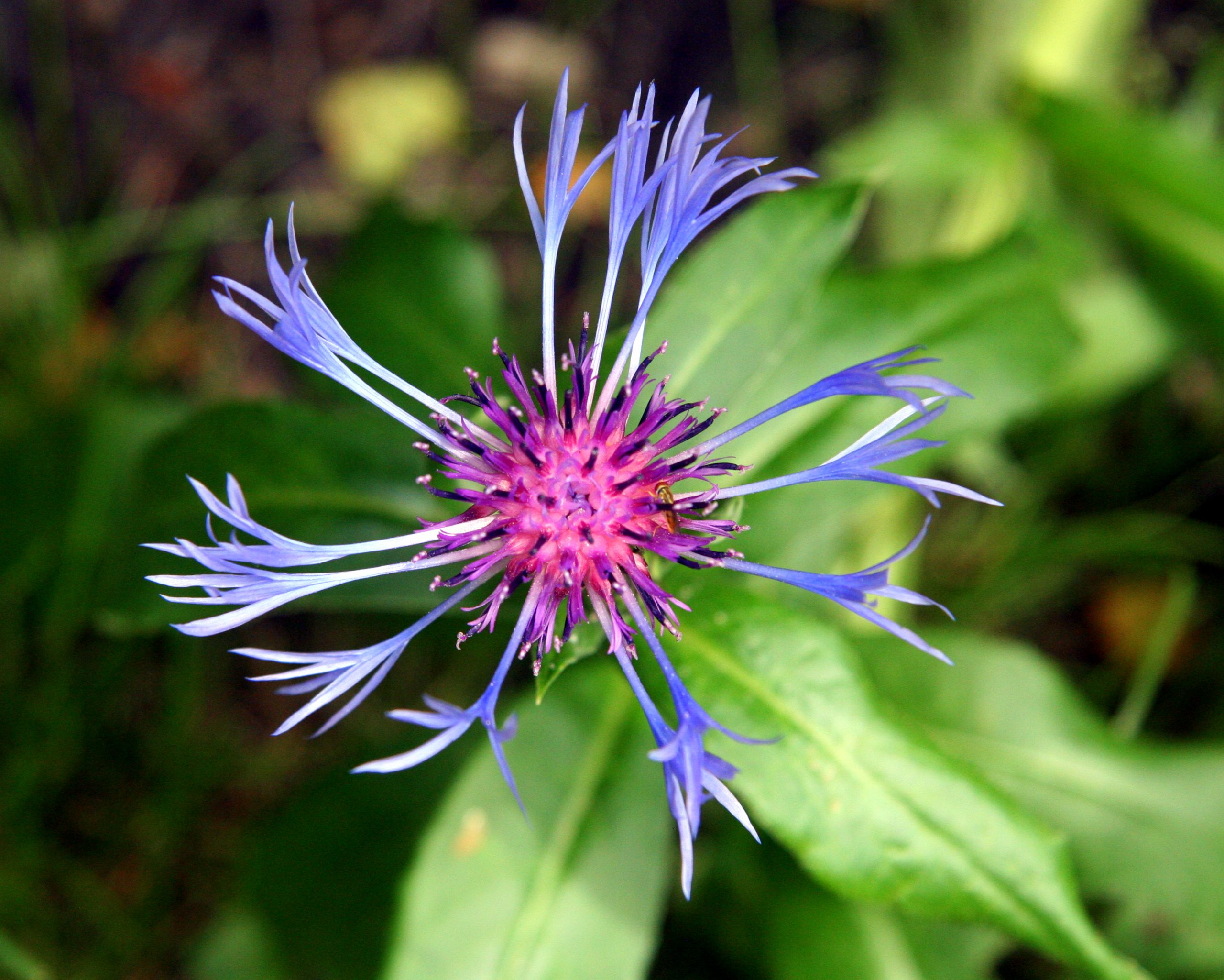 Also known as knapweed and related to cornflowers (genus Centaurea) the purple-blue bachelor’s button is an inviting perch for a tiny insect and an old-fashioned boutonnière.
