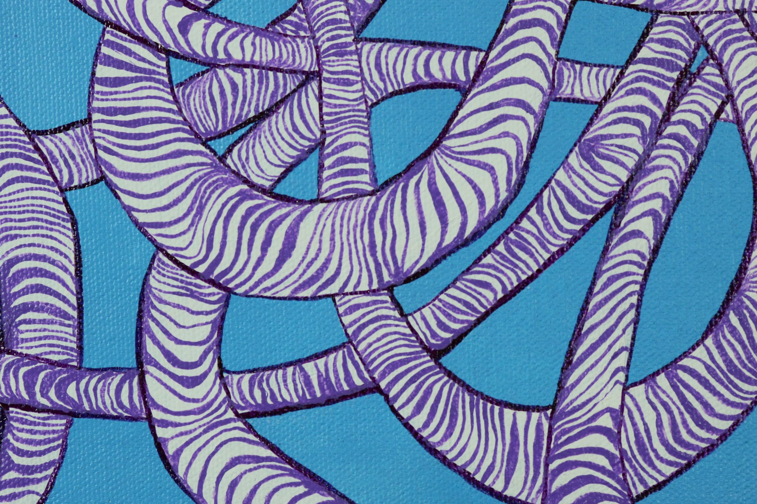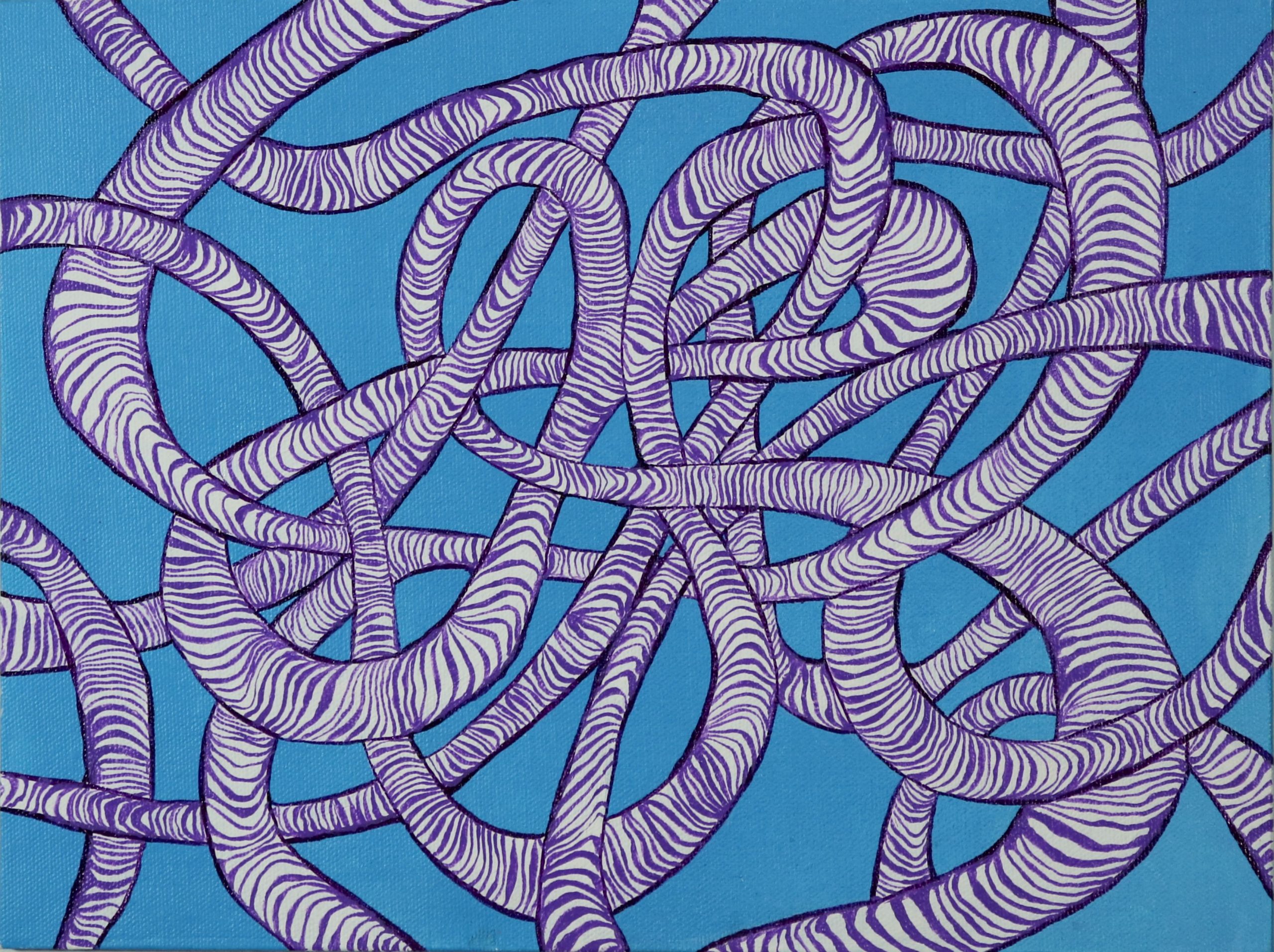 9″x12″ archival artist's print of Bustling, a playful tangle of loops with zebra-like stripes.